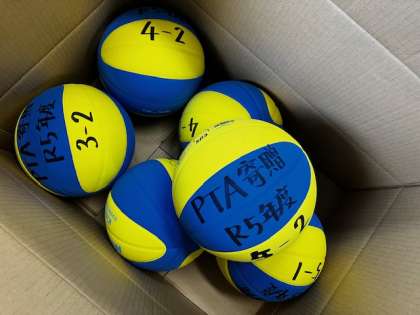 PTAからの寄贈です。ゴールが1つと、バスケットボールを3年生以上の各クラスごとに1個ずつ贈られました。