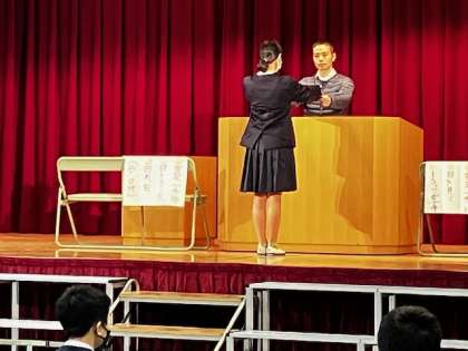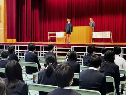 いよいよ2週間後に近づいてきた卒業式。講堂で声の通り方や、動き方を含めた練習です。