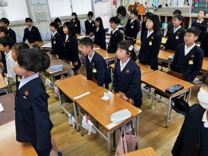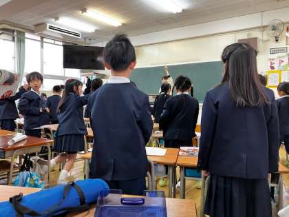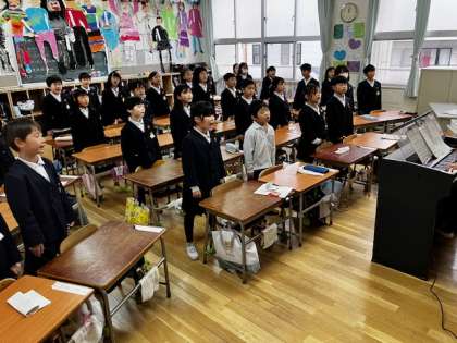 講堂での練習の後、教室でも練習しています!忘れたらあかんからね。