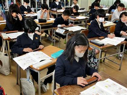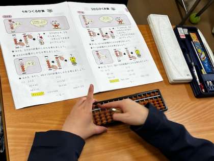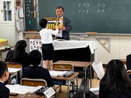 3年生で、そろばんをしています。そろばん教室の先生に来ていただいて、そろばんの使い方を教わりました。