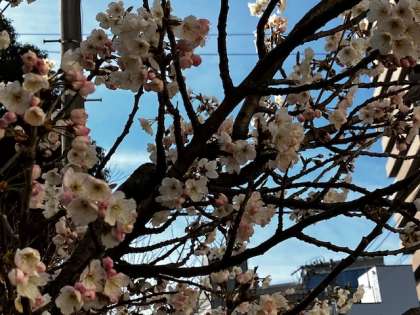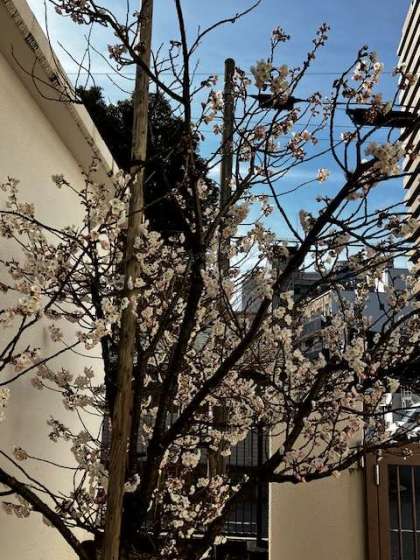 校庭の桜の木が、一本だけですが開花しました。その桜の木の花は、待ちかねていたかのように、一斉に花びらを開きました。もう春ですね!