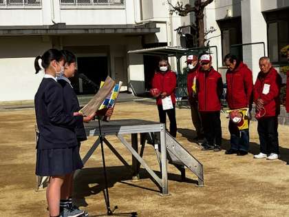 在校生を代表して、6年生からお礼の言葉と感謝状をお渡ししました。