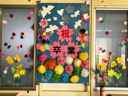 いきいき教室の飾りが「祝 卒業!」にしてくださいました〜。