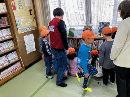図書館の絵本を見ると、すぐに本を広げて読み始めました。本好きで何よりです。