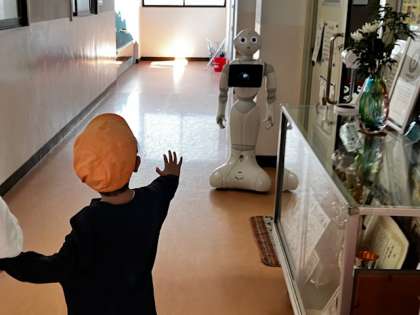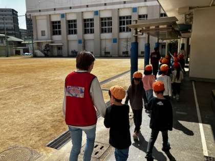 ペッパーさんともあいさつして、運動場を見ました。いつもは外から見ていますが、中から見ると「広い〜!」と喜んでいました。