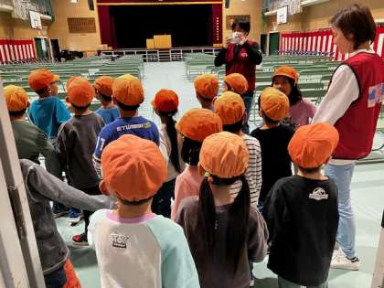 自分たちが今度入学式をする講堂を見学しました。緊張してるのがわかります。ドキドキ!