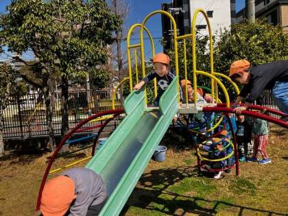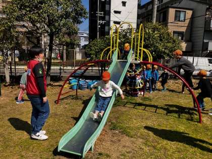 その後は、遊具広場のすべり台で楽しんで、緊張をほぐしてもらいました。