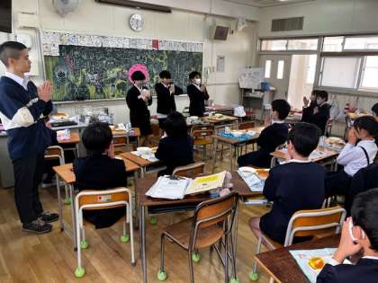 6年生にとっては豊仁小学校での最後の給食です。子どもたちも「最後の給食やなぁ〜」としみじみ。