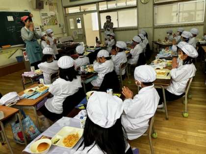 今年度のラス前「いただきます」ショットは、1年2組でした!