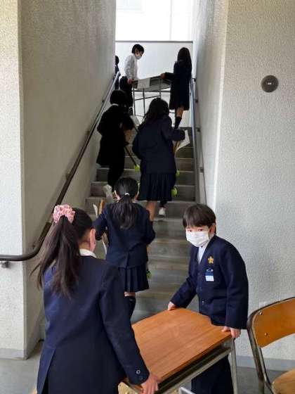 4月からの教室整備の一環で、机の移動をしました。学年によって机・椅子の大きさが違うので移動します。
