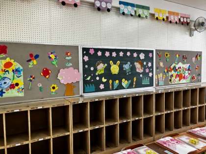 1年生の教室や、持って帰ってもらうものなどの準備も終わりました。入学式場のお花も入って、明日の式を待つだけとなりました。