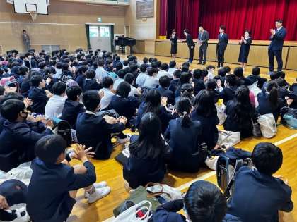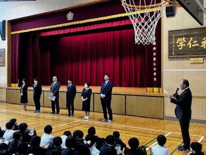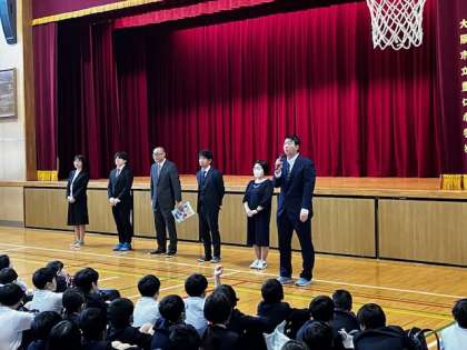 始業式の前に、まず、着任式をしました。新たに豊仁小学校に来られた教職員を子どもたちに紹介しました。今年度は6名の新しい方々です。