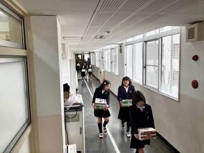 年度はじめなので、配布物が沢山あります。教科書も、図工室からクラス分を運びます。