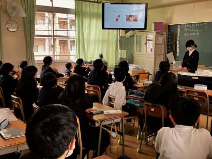隣の6年生の教室では、自己紹介をパソコンで作って、みんなに紹介していました。