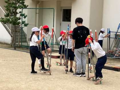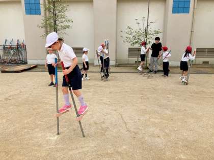 竹馬、けっこう上手に乗れる子も増えてきたようです。休み時間に挑戦してくださいね!