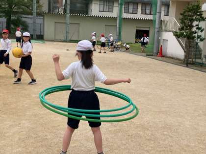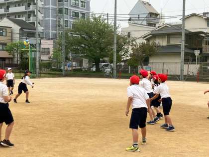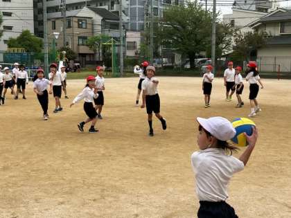 最後はみんなでドッチボールです。休み時間の遊びナンバー1ですから、みんな上手です!