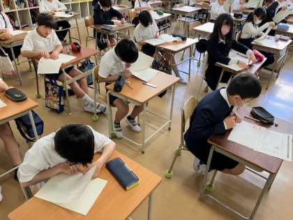 今日は、大阪府の「小学生すくすくウォッチ」というテストをしています。これは、府下全ての公立小学校5・6年生の学力診断をするもので、国語・算数・理科と児童の生活についてのアンケートをするものです。
