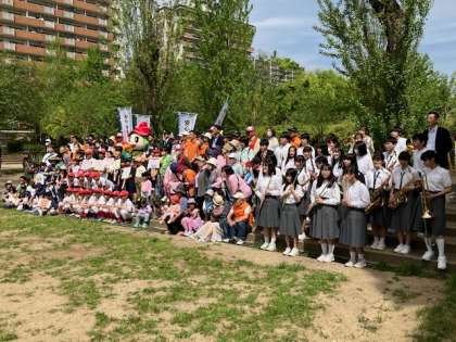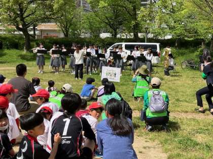 区長さんや警察署長さんのご挨拶の後、新豊崎中学校音楽部による演奏で開会されました。