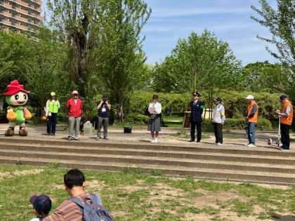 久しぶりの攻犯パレードです!豊仁・豊崎東地域の皆さんによる、犯罪を許さない社会をめざしての取組みです。