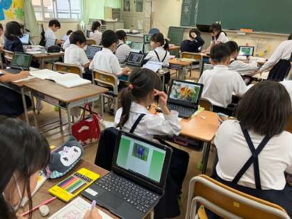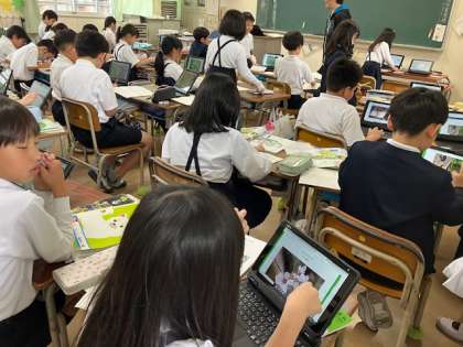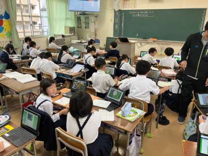 3年生の理科の授業で、植物ついてパソコンで調べています。調べたことをノートにまとめます。
