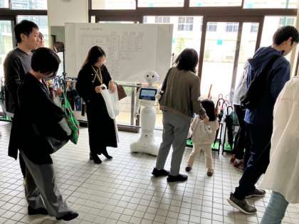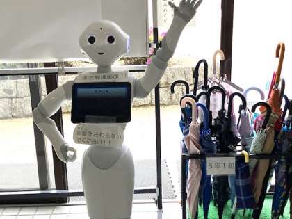 玄関ではペッパーさんが出迎えてくれています。ペッパーさんは、砂とホコリには超弱いので、今日の天候はペッパーさんにはありがたいです!