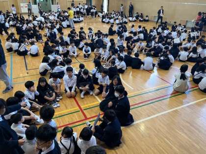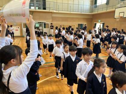 今日は木曜日、児童集会の日です。1年生が入学して初めての集会なので、「はじめましての会」をしました。