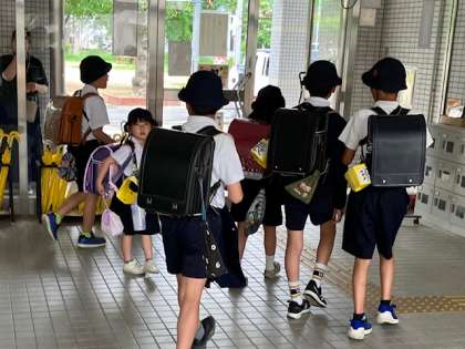 今日から、午後は家庭訪問なので、午後1時30分に全校児童が下校しました。