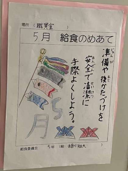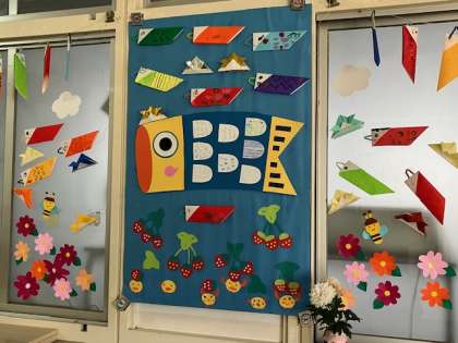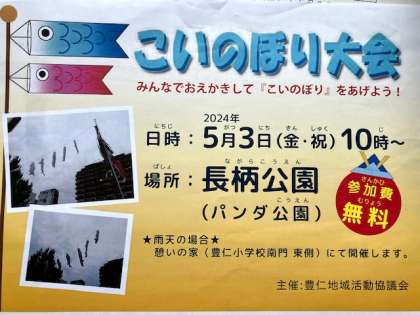 今週の金曜日(3日)には、地域主催の「こいのぼり大会」が開催されます。毎年恒例で、白地のこいのぼりに、自分たちで、絵を描いたり色をつけたりして、できたこいのぼりをパンダ公園に揚げてもらいます。