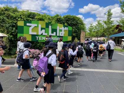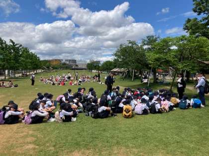てんしばに到着しました。今からお弁当タイムです。暑くもなく寒くもない、いい天気です!