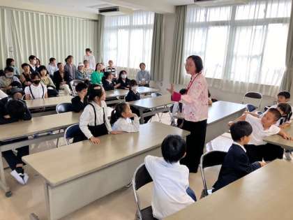 一人一人の自己紹介の後、国際クラブの名前をみんなで決めました。豊仁小学校の豊や仁の文字と、他の文字を組み合わせて、みんなで意見を出し合いました。保護者の方からもいい提案もありました。