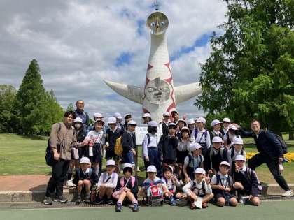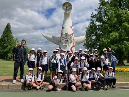 万博記念公園に到着!入場すると、目の前が、あの「太陽の塔」です。とりあえず記念写真ですね。