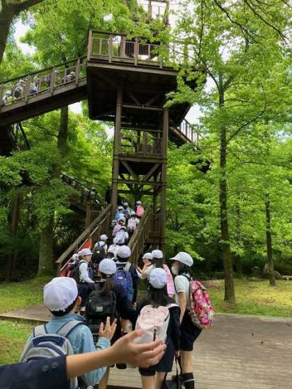 いよいよソラードの始まりです。公園内の大きな大きな森の中に、樹上に木で道を作られています。