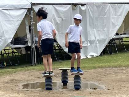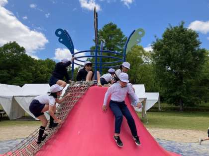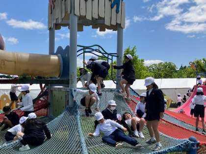 お弁当の後は、食後の運動で、ジャンボ遊具で遊びます!ビョンビョン跳びまくり!