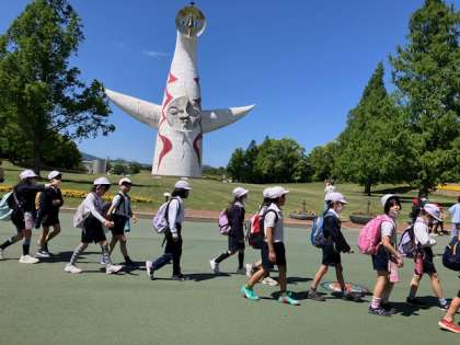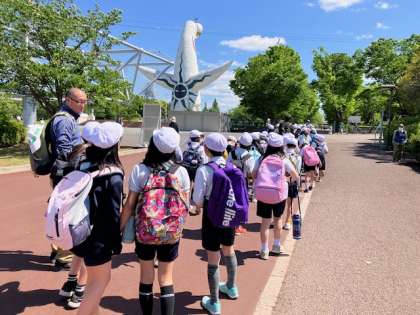 予定通りの時間に、万博記念公園を後にしました。午後3時半、学校帰着をめどにモノレールに乗車します。