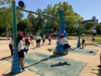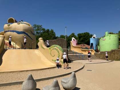 最後、まいまい広場で最後のお楽しみタイムです。かたつむりの形をした遊具を揃えているので、まいまい広場。