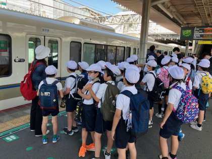 きれいな花に見送られて、久宝寺緑地公園を後にしました。くたくたに遊び疲れて、学校に向かいます。