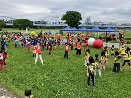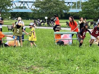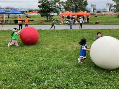 そして、第一競技は大玉転がし。低学年の子どもたちには身体より大きな球を転がします。