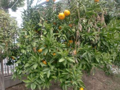 遊具広場にあるみかんの木に実がなりました。とってもたくさんついていました。
