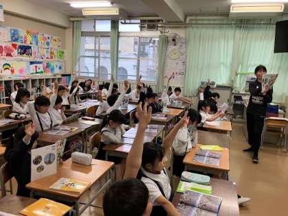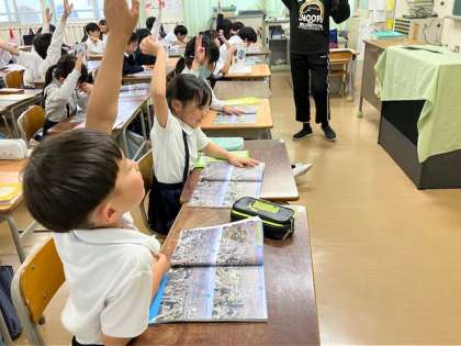 3年生の教室で、先週の社会見学(環状線一周、あべのハルカス)の振りかえりをしていました。