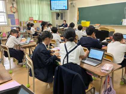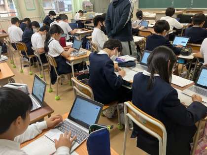 6年生、5年生の教室の様子です。同じ時間、どちらもタブレットを使っていました。