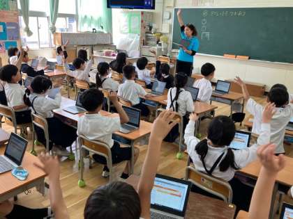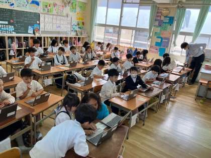 2年生の授業。パソコンで大阪市が進めている「心の天気」を入れました。自分の気持ちの様子を、お天気になぞらえて、晴れ・曇り・雨から選んでタッチします。