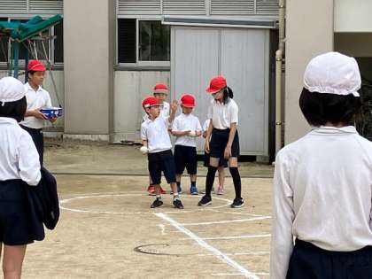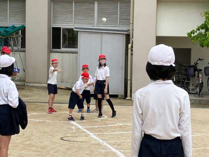 今日は、1年生のソフトボール投げに6年生がお手伝いをしてくれています。みんなでお手伝いするのは、給食が始まった際のお手伝い依頼ですね!