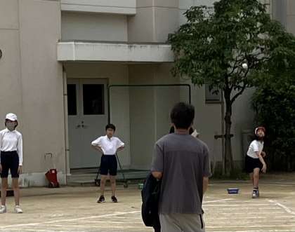 6年生のソフトボール投げは、自分たちで投げて、自分たちで拾います。当然ですけど。