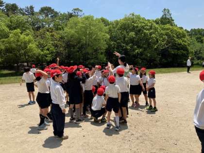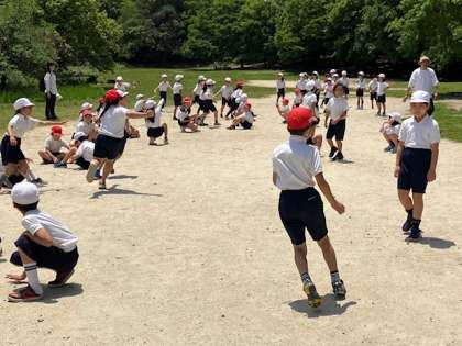 最初はクラス対抗「陣地取りゲーム」。