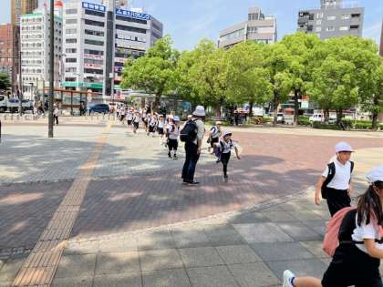 学校を出発して1時間で長居公園に到着しました。
