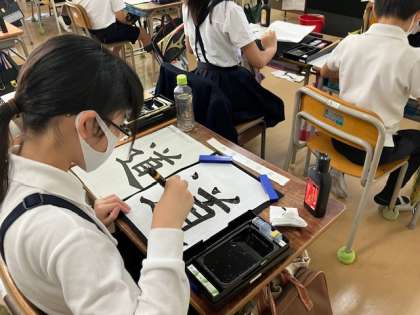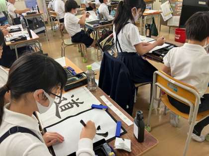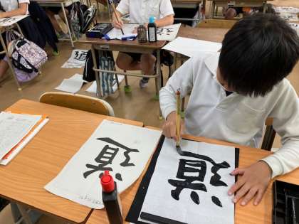 5年生の書写の時間。「道」を書きます。バランスのとり方が難しそうですね。最後のしんにゅう、上手く書ければカッコよくなりますが。
