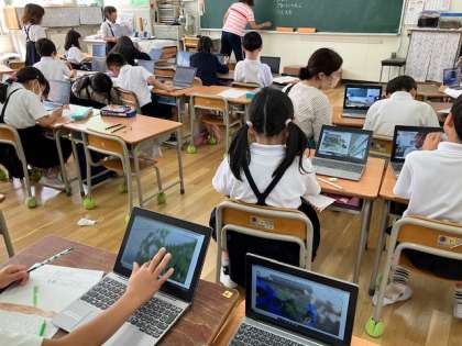 一人一人がタブレットで撮影した植物の写真を見ながら、ノートに絵を描いて日記を書きました。