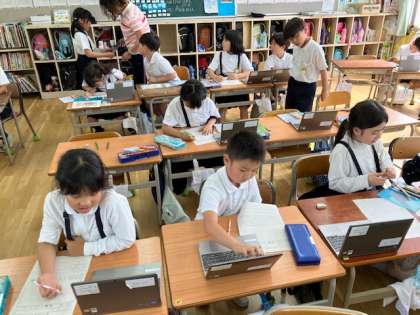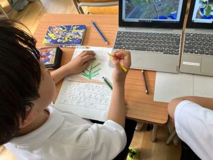 写真がどれもこれもブレてしまっていて〜残念!という子もいます。2年生にはタブレットで撮影するには少し重かったかもですね。