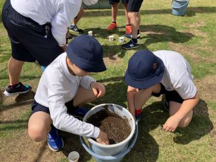 1年生はアサガオの水やりもしに来ています。