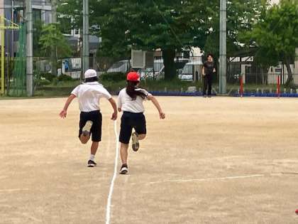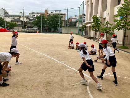 5年生の体力測定、50メートル走をしています。